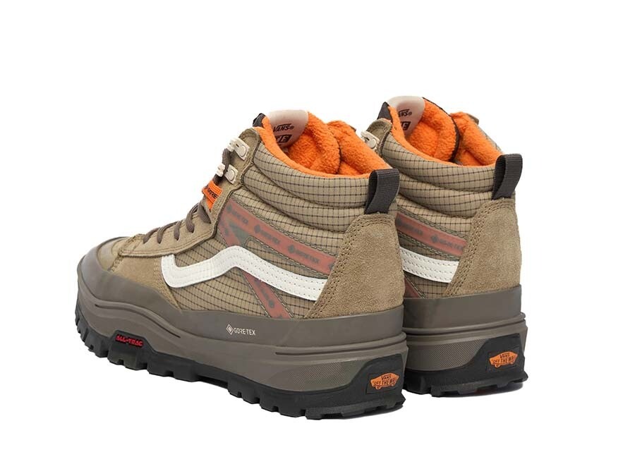 Cuando hablamos de protección total frente a los elementos, la colaboración con GORE-TEX® es clave. En Baldani contamos con la Vans Sk8-Hi GORE-TEX® Insulated Brown / Khaki, un modelo que incorpora la membrana GORE-TEX®, reconocida por su impermeabilidad, transpirabilidad y durabilidad.