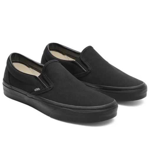 COLOR:Black/BlackDESCRIPCIÓN Y CARACTERÍSTICAS:Las Classic Slip-On de Vans son unas zapatillas bajas sin cordones, con acabados laterales elásticos y cuello acolchado para más confort. También llevan la etiqueta de Vans y la inconfundible suela waffle de la marca para un agarre más firme.